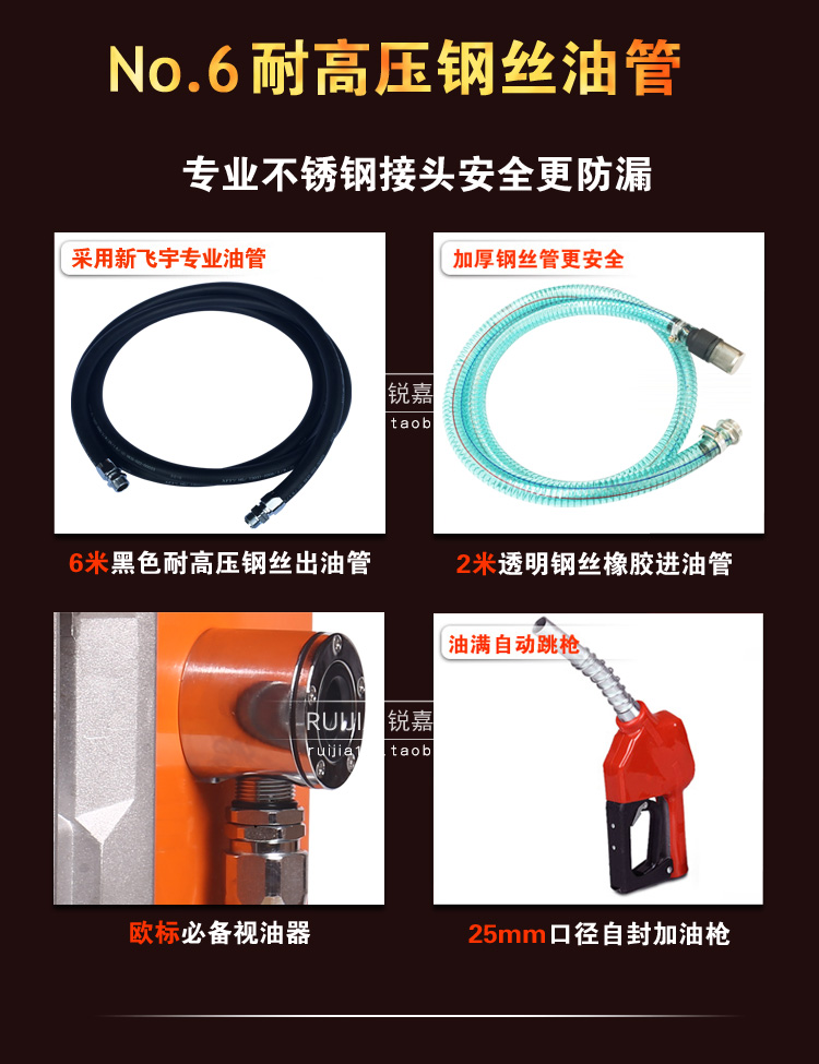 | 標(biāo)準(zhǔn)配置: | 六分出油管6米(黑色橡膠鋼絲管),1寸進(jìn)油管2米(透明鋼絲膠管),鑰匙一把,六分加油槍一把(油滿自動(dòng)跳槍),標(biāo)配主機(jī)(采用正星同款活塞式流量計(jì))。 |